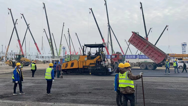 2021年12月29日上午,我公司接到陜建華山路橋的緊急通知,參建西安市高新區(qū)方艙醫(yī)院項目,在疫情蔓延形勢復雜嚴峻的情況下,防控工作刻不容緩,我公司立即將參建放艙醫(yī)院作為一項特殊時期重要、緊急、光榮的任務,高度重視、迅速響應。各部門職工紛紛主動請纓,積極投身方倉醫(yī)院建設(shè)。由于疫情影響,面對原材料短缺、勞務人員短缺,我們克服了重重困難,迅速集結(jié)了30余名管理人員組成施工突擊隊,第一時間奔赴現(xiàn)場。當天下午4點,組織包括兩臺ABG8620瀝青攤鋪機、同步碎石封層車、雙鋼輪壓路機、膠輪壓路機、及小型前鋼后膠壓路機等機械設(shè)備已進入工地現(xiàn)場。同時前場技術(shù)員、施工員、安全員、后勤員、運輸隊均已進入各自工作崗位。12月29日起,連夜生產(chǎn)8000余噸二灰碎石混合料,道路面層采用瀝青混合料進行鋪設(shè),生產(chǎn)成品瀝青混合料5000余噸,經(jīng)過全體人員不分晝夜,緊張有序的連續(xù)施工,高新區(qū)放艙醫(yī)院項目順利完成。