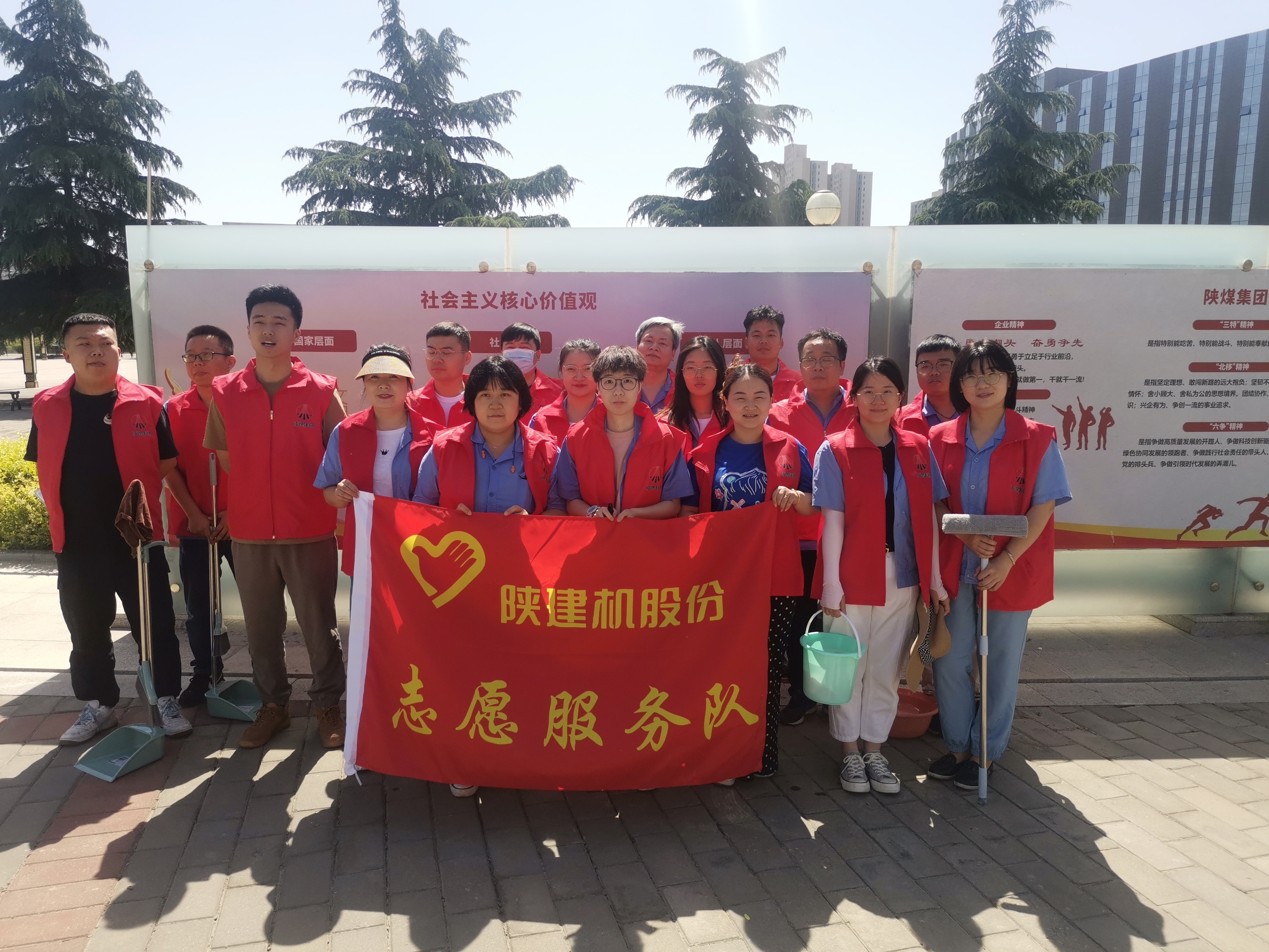 今年以來,陜建機股份扎實推進志愿服務工作,志愿服務品牌逐漸深入人心,志愿服務活動形式也更加豐富多彩,從靚化文化長廊,到服務“核酸檢測”,從職工福利物資發放,到便民利民的清涼小站……一道道色彩斑斕的力量從各個車間部室涌現出來,“陜建機藍”們化身“志愿紅”“防疫白”“健康綠”,每種顏色都迸發著蓬勃力量,在陜建機股份園區繪制成美好風景線。“志愿紅”扮靚園區展文明樹新風文化展板是教育引導職工的重要輿論陣地,文化廣場是展示公司良好形象的重要窗口,為加強精神文明建設,美化園區環境,志愿服務隊組織開展了“亮化文化展板 靚麗園...